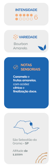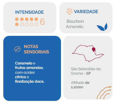 ☕ Notas sensoriais: Caramelo e frutas amarelas